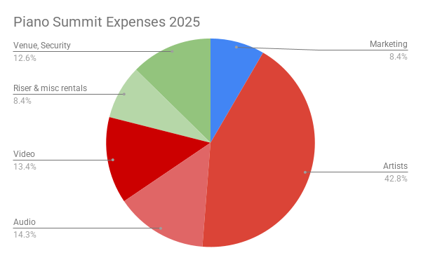 In-kind donations: Videographers and Audio engineers are donating 25 – 50% of regular fees and performing artists are taking lower fees because they believe in what we are building. More than 20 volunteers help staff each season. Producing and Video editing is done entirely for free.